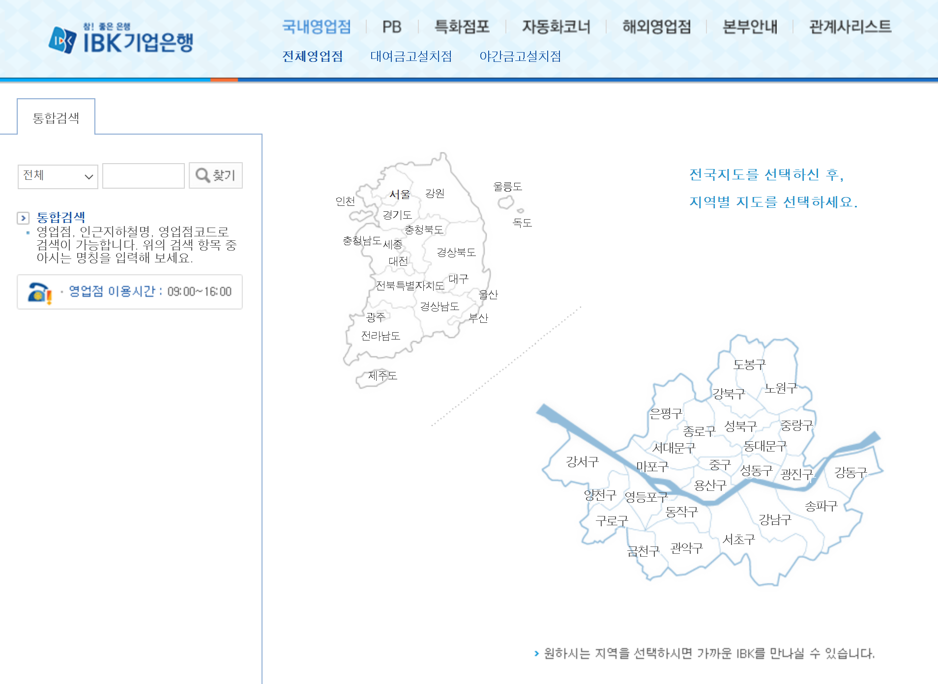 기업은행 영업점 위치 검색