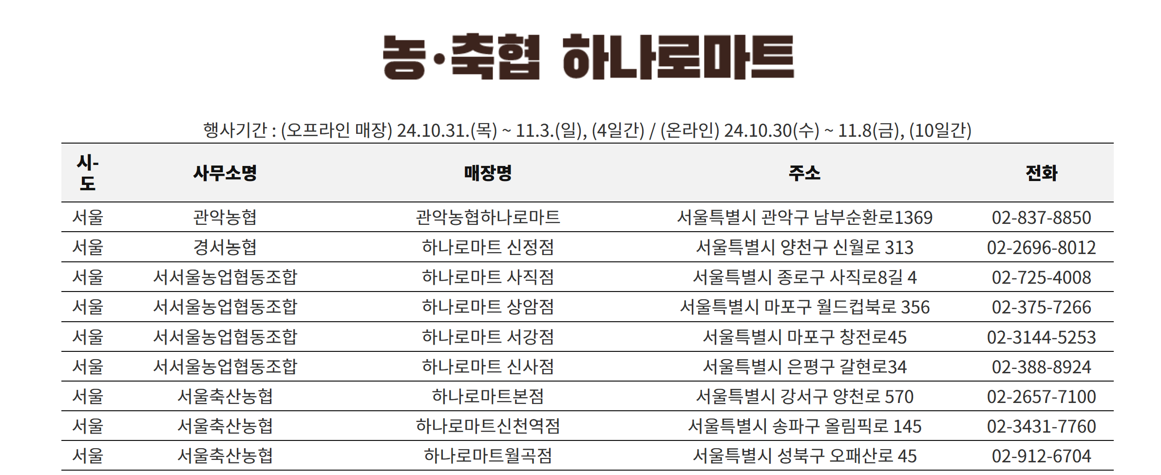 할인행사 중인 하나로마트 오프라인 매장 위치 찾기 👉바로가기