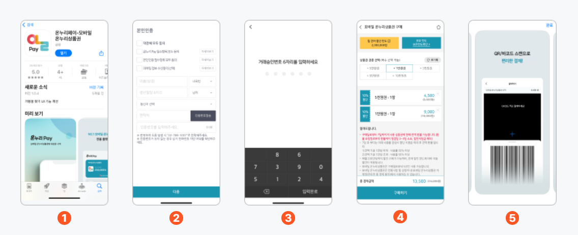 모바일 온누리상품권은 비플제로페이, 온누리페이 등 다양한 제로페이 연계 앱에서 구매할 수 있습니다. 사용 중인 스마트폰의 앱 스토어에서 해당 앱을 설치하세요. - 회원 가입 및 본인 인증