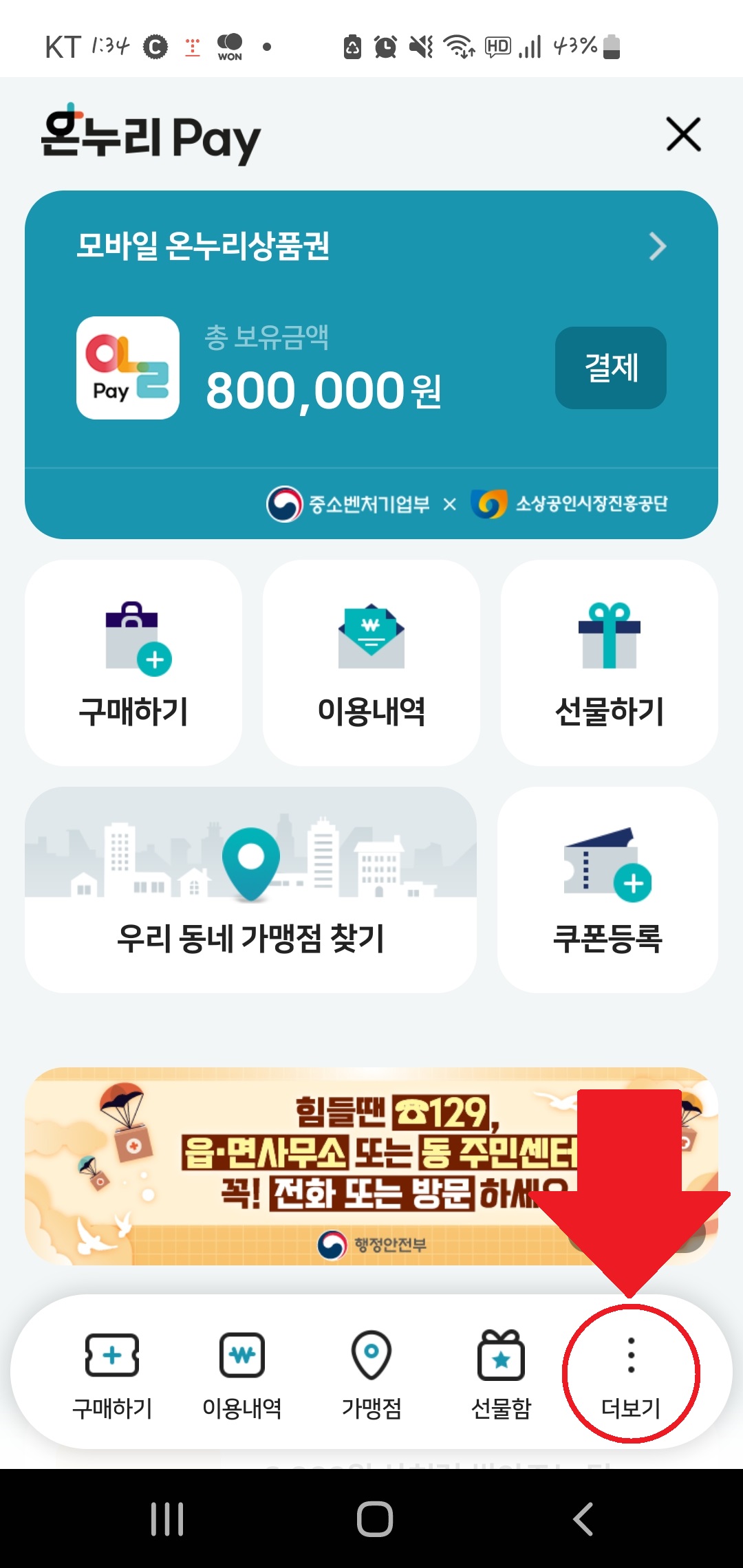 2. 오른쪽 하단에 '더보기' 메뉴를 선택합니다.