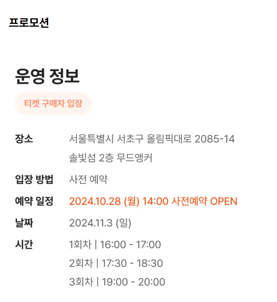 ☑️행사 일시: 2024년 11월 3일 (오후 4시, 5시 30분, 7시)