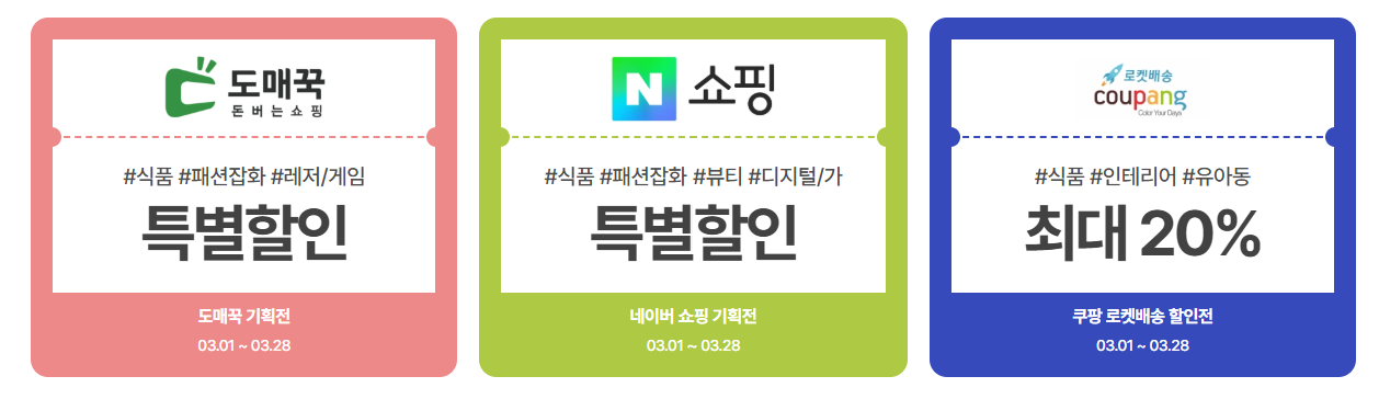 쿠팡, 11번가, 롯데온 등 주요 온라인 쇼핑몰과 정부·지자체 공공 쇼핑몰까지, 총 190여 개 채널에서 최대 50% 할인 쿠폰, 타임 특가, 특별 할인전까지 놓칠 수 없는 혜택이 쏟아집니다!