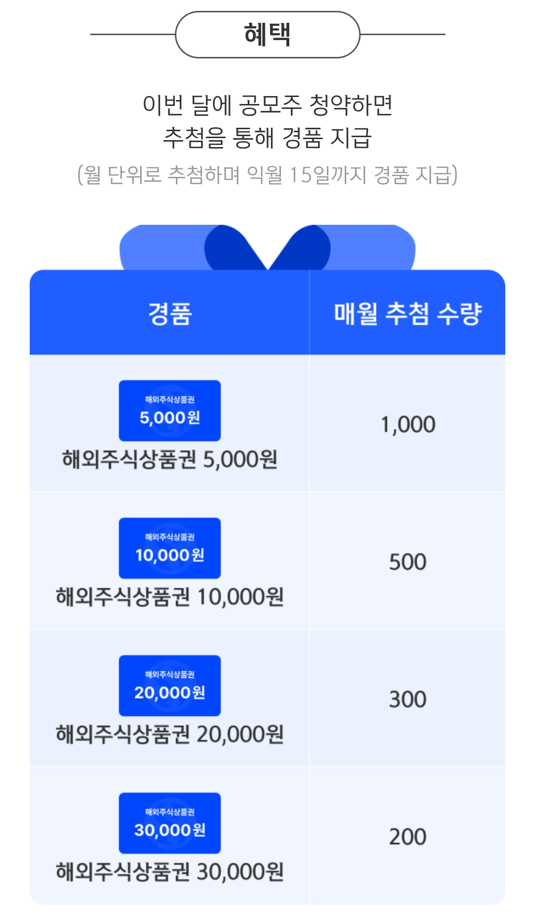 - 공모주 청약이 없는 달에는 경품이 지급되지 않습니다.