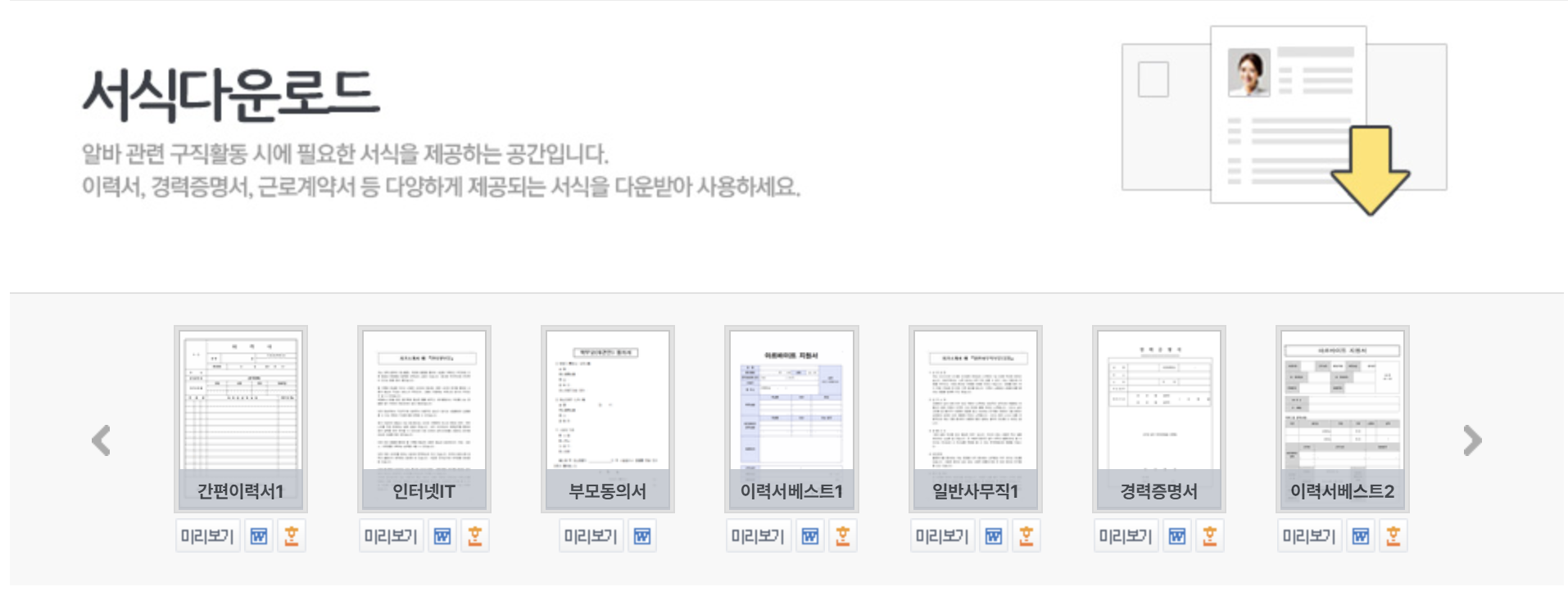 알바천국 무료 이력서 다운로드