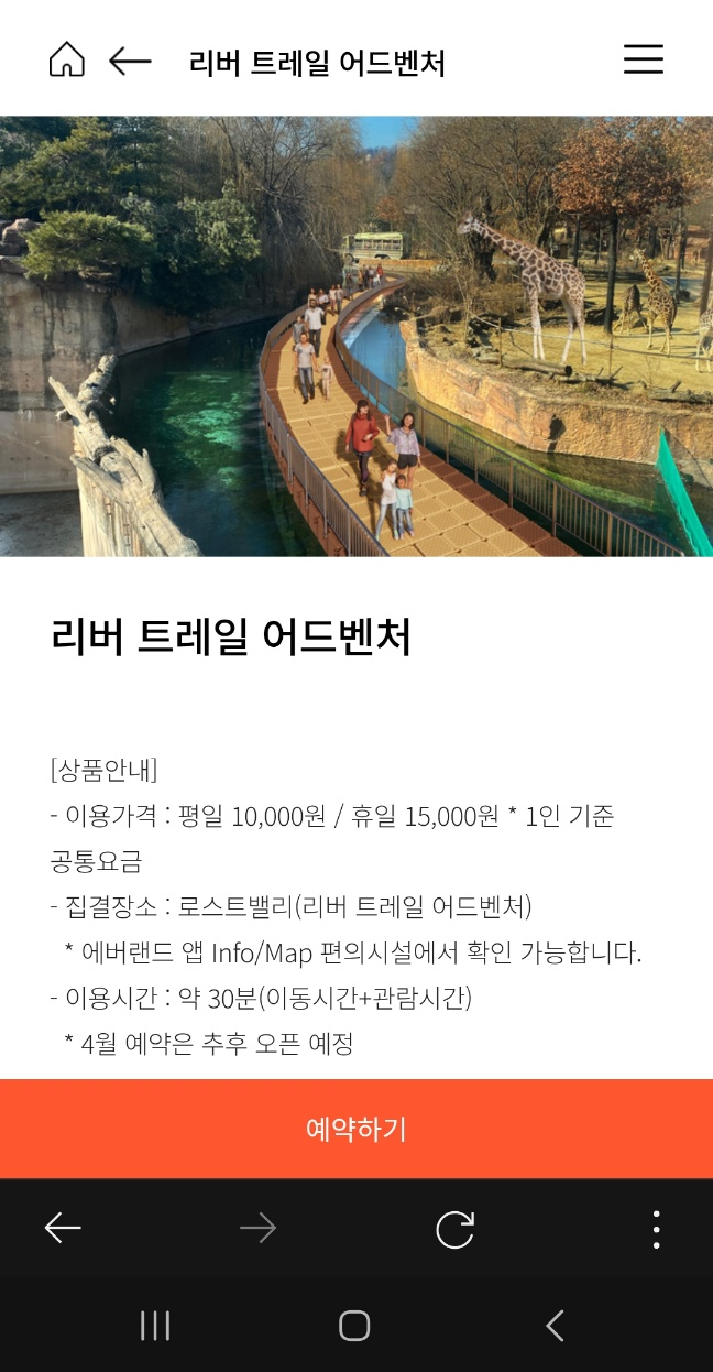 에버랜드 '리버 트레일 어드벤처'는 사전 예약제로 운영됩니다. 원활한 이용을 위해 미리 예약하는 것이 좋습니다.