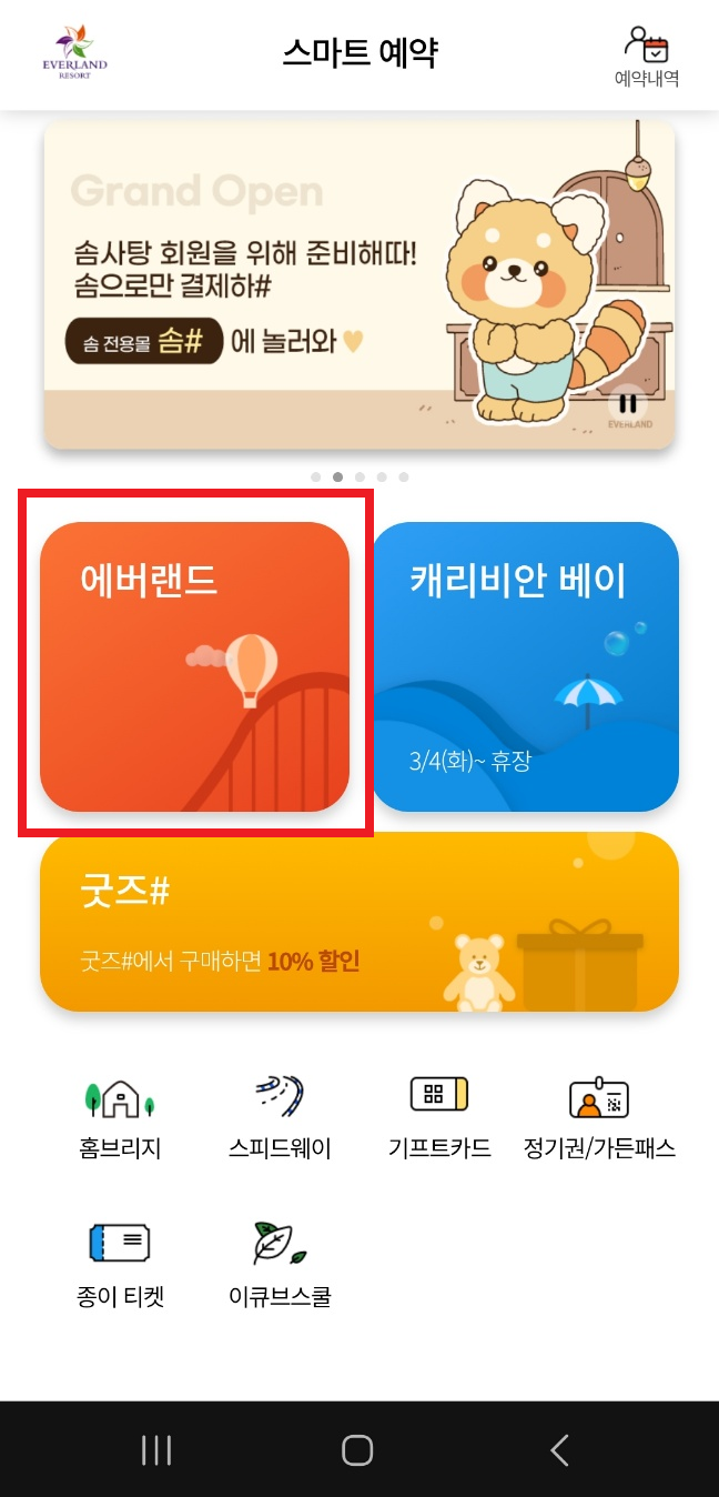 - 에버랜드 공식 모바일 앱 또는 홈페이지 접속