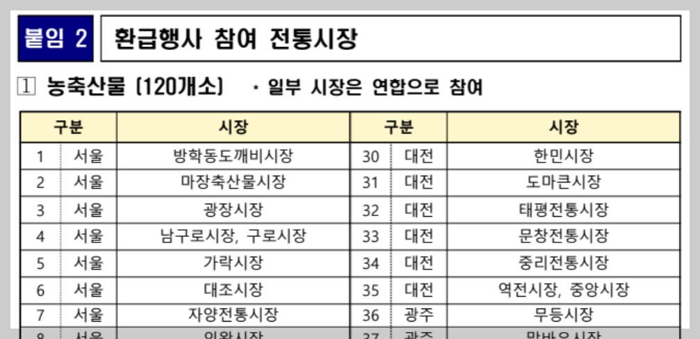 이번 행사는 지정된 시장에서만 진행되니, 구매 전 환급 가능한 시장을 미리 확인하세요. 참여 시장을 손쉽게 검색할 수 있는 방법이 마련되어 있으니, 가까운 전통시장에서 환급 혜택을 누릴 수 있는지 꼭 체크해 보세요!