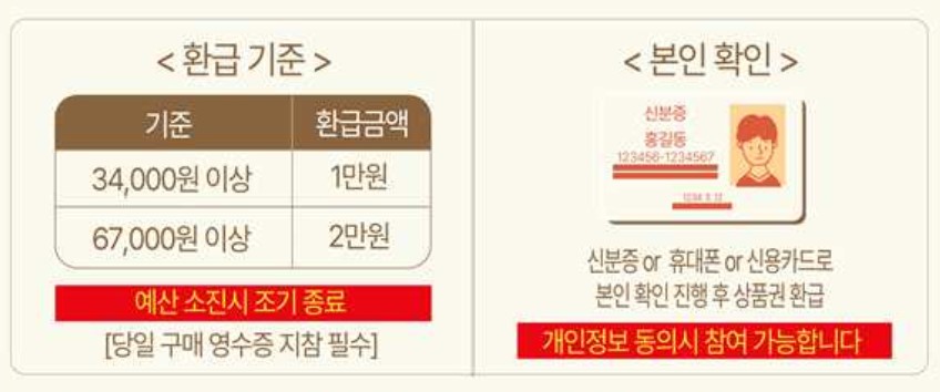 - 구매 금액에 따라 온누리상품권 1만 원 또는 2만 원 지급