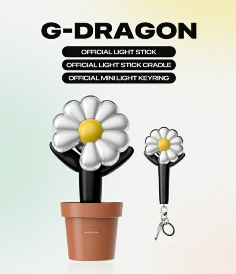 지드래곤이 드디어 기다리던 공식 응원봉을 출시합니다. 팬들이 가장 기다려온 이 순간! 이번 응원봉은 지드래곤의 상징인 ‘데이지 디자인’으로, 그의 독특한 스타일을 그대로 담아냈습니다. 이제 그가 직접 디자인한 응원봉으로 팬들과 함께할 준비가 끝났습니다.