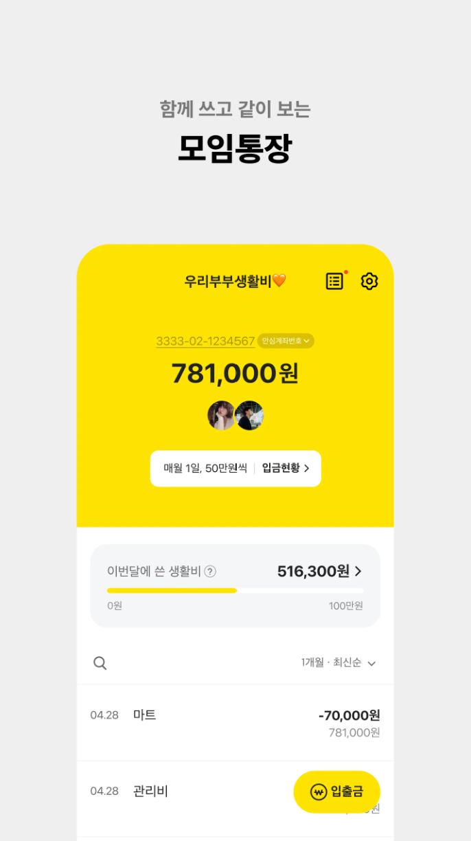 • 자동이체: 고정 비용을 매월 자동으로 이체 설정 가능.