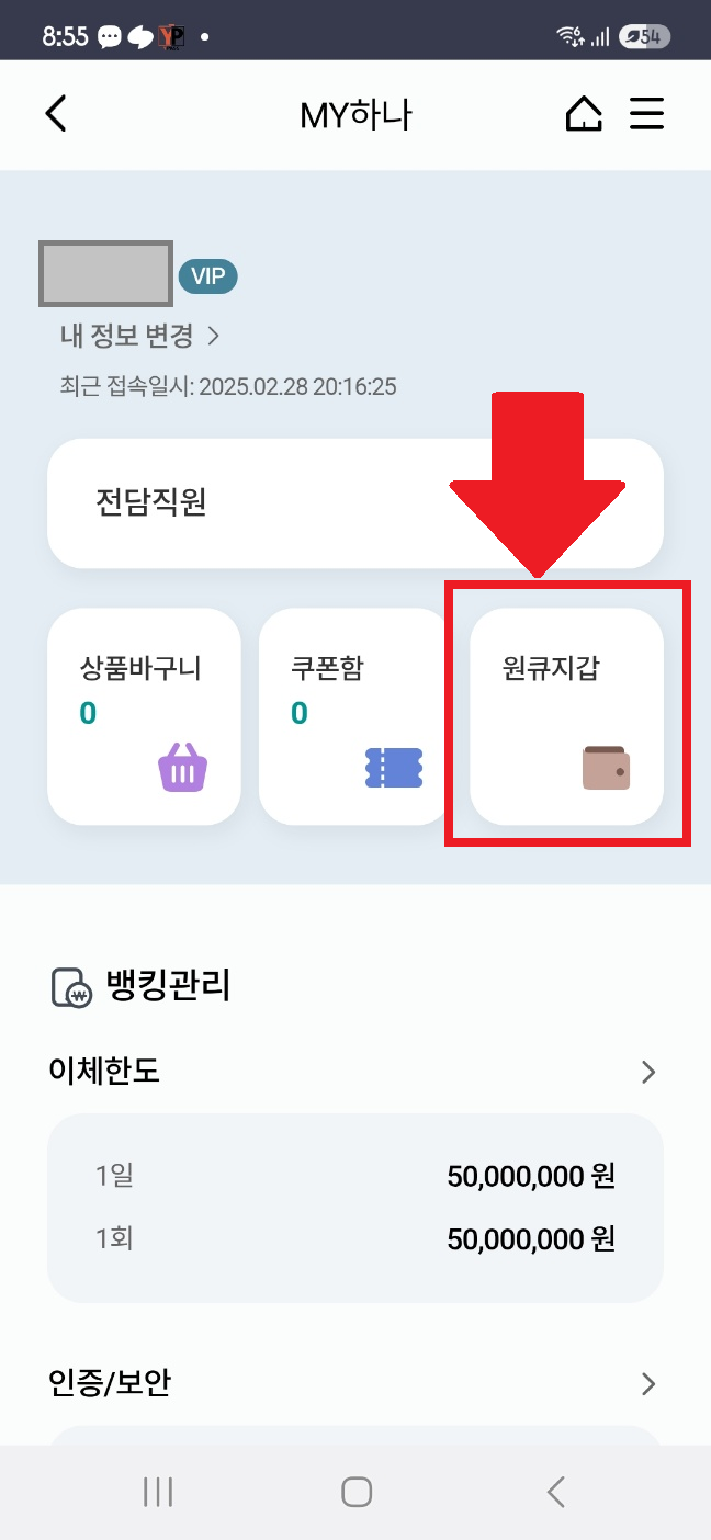 - 앱 메인 화면에서 'MY하나 > 원큐지갑 > 혜택알리미' 배너를 찾아 터치하세요.
