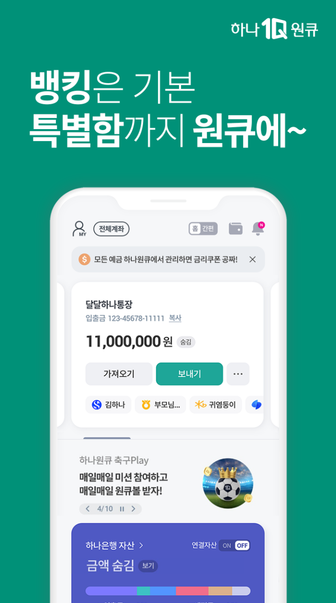 - 스마트폰에서 '하나원큐' 앱을 실행하세요.
